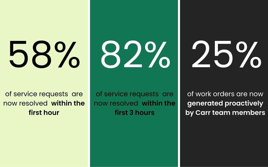 What’s even more impressive is that 25% of work orders are now generated proactively by Carr team members. This proactive approach highlights their commitment to providing the best customer service experience while maintaining top maintenance standards across their properties.